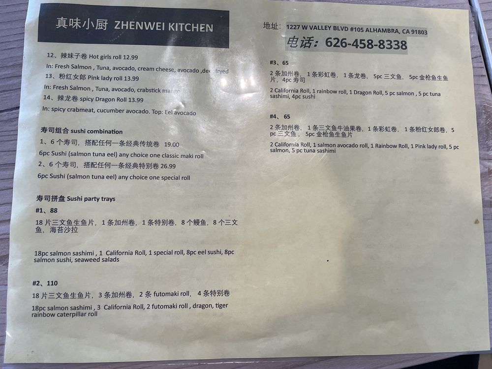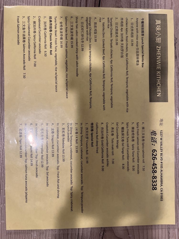 Welcome to Zhenwei Kitchen, a hidden gem blending authentic Chinese and Japanese cuisine in Alhambra, CA. Located at 1227 W Valley Blvd, this family-owned restaurant boasts a diverse and enticing menu, making it a must-visit for food enthusiasts.